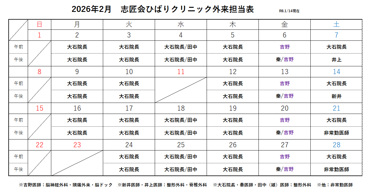 診療予定表