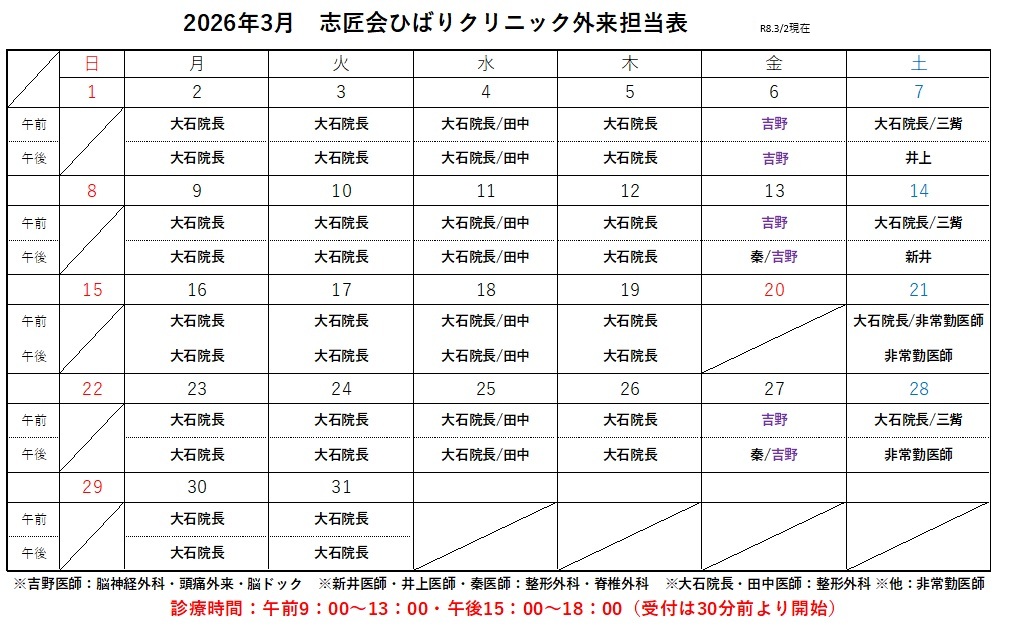 • 診療予定表