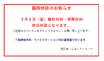金曜日 整形外科午後のみ診察あり
